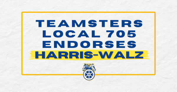 Chicago, IL - Teamsters Local 705 is proud to announce our endorsement of Kamala Harris for President and Tim Walz for Vice President in the 2024 election. This decision is not about typical party politics. It's about survival for working families, our communities, and the very foundation of workers' rights in America.
